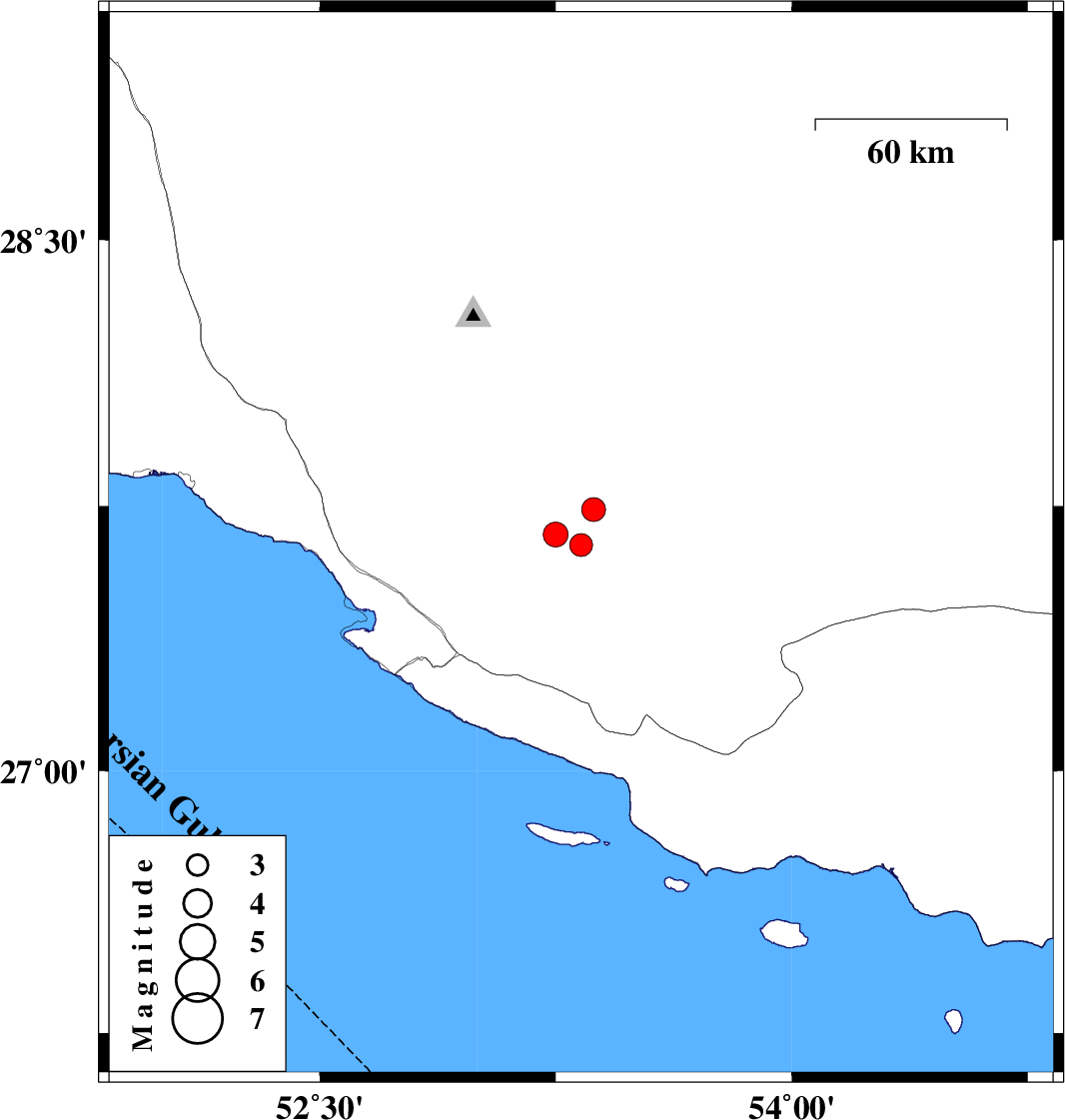 | 2020/09/28 | 03:30:26.9 | 07:00:26.9 | 27.64 | 53.33 | 10 | ML3.3 | Fars Province, 38 km North-East of Lamerd | ||