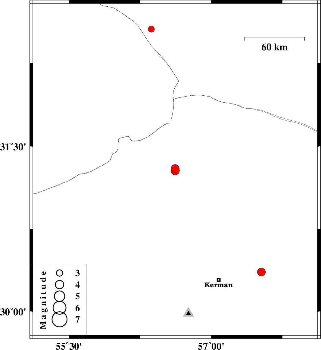 | 2020/09/24 | 06:43:28.7 | 10:13:28.7 | 30.36 | 57.53 | 10 | ML3.8 | Kerman Province, 44 km -East of Kerman |