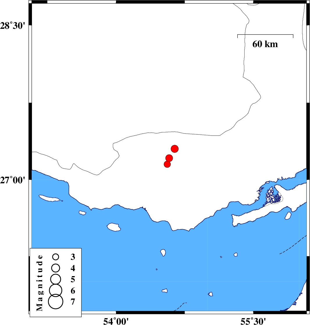 | 2020/10/26 | 20:24:58.2 | 23:54:58.2 | 27.27 | 54.6 | 10 | ML3.5 | Hormozgan Province, 25 km -East of Bastak | ||
