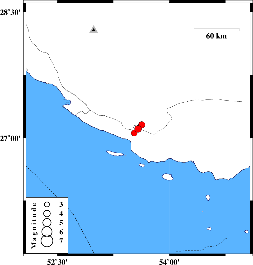 2020/11/22 04:13:57.2 07:43:57.2 27.1153.5815 ML4.3 Hormozgan Province, 48 km South-East of Lamerd