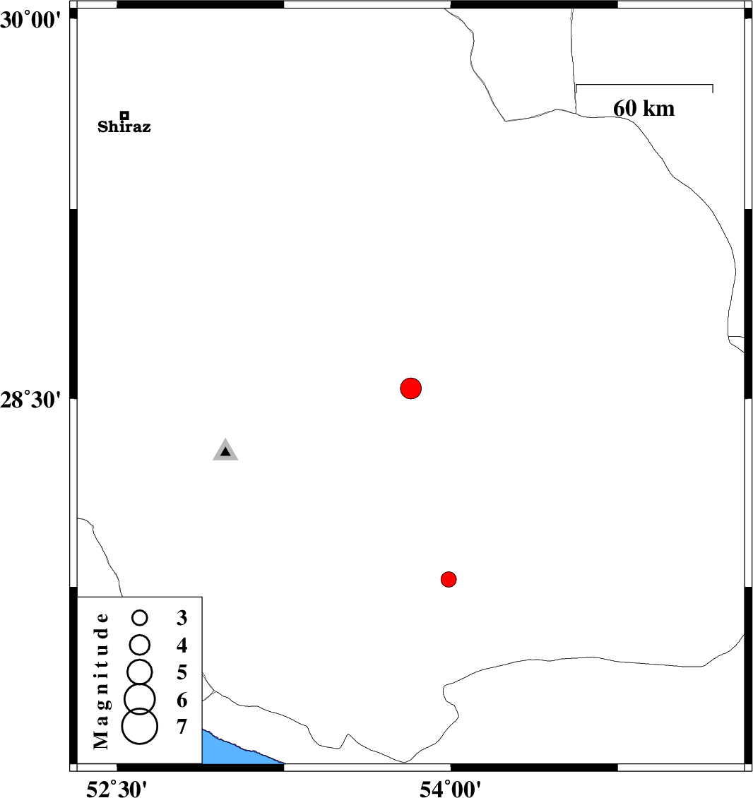 | 2020/12/01 | 18:35:40.2 | 22:05:40.2 | 27.78 | 53.99 | 20 | ML3.1 | Fars Province, 36 km North-West of Lar |