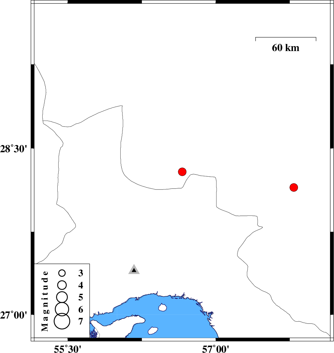 | 2020/12/04 | 20:40:27.3 | 00:10:27.3 | 28.15 | 57.79 | 10 | ML3.6 | Kerman Province, 24 km North of Kahnuj |