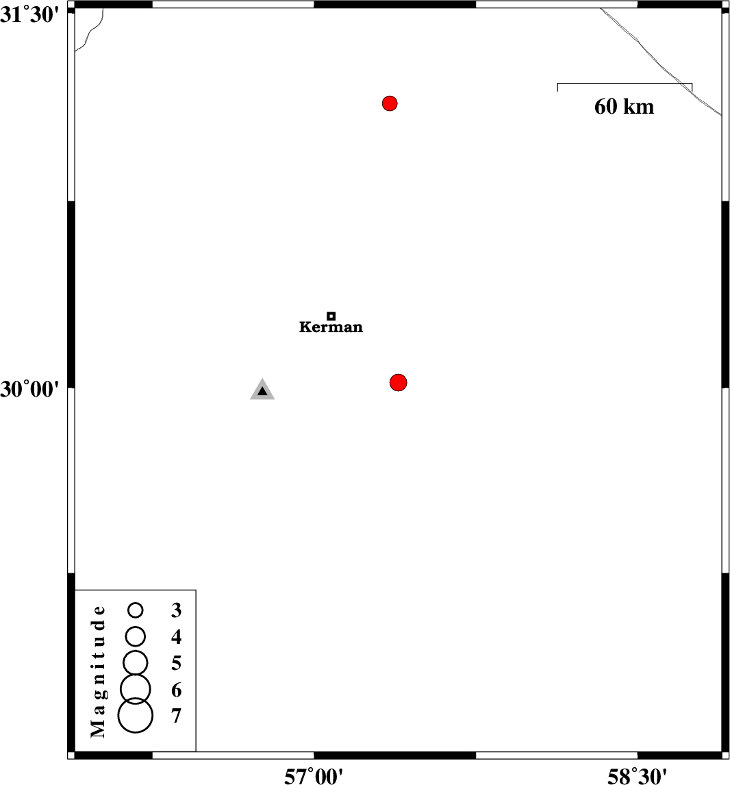 | 2020/11/03 | 19:38:23.8 | 23:08:23.8 | 30.02 | 57.39 | 10 | ML3.5 | Kerman Province, 42 km South-East of Kerman | ||