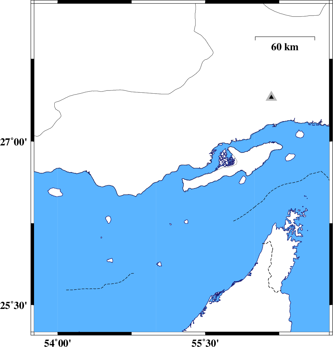 | 2021/01/15 | 23:24:20.8 | 02:54:20.8 | 26.75 | 55.26 | 29 | ML3.8 | Persian Gulf, 48 km North-East of Bandar-e lengeh | ||