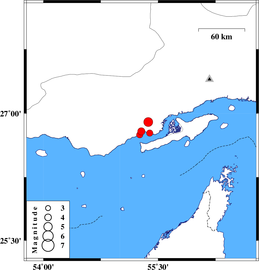 2021/01/15 23:24:20.8 02:54:20.8 26.7555.2629 ML3.8 Persian Gulf, 48 km North-East of Bandar-e lengeh