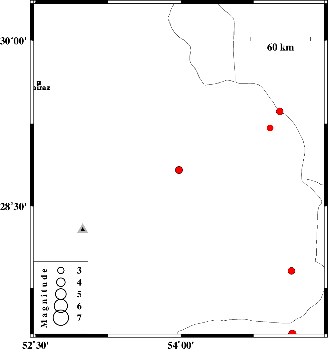 | 2021/01/14 | 13:19:45.4 | 16:49:45.4 | 29.36 | 55.02 | 10 | ML3.3 | Fars Province, 64 km -West of Sirjan | ||
