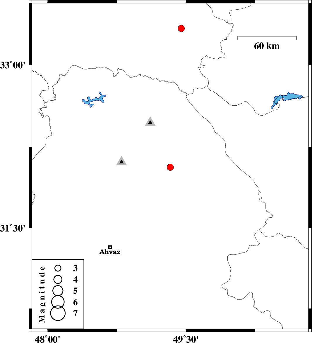 | 2021/01/24 | 08:49:11.3 | 12:19:11.3 | 32.06 | 49.33 | 10 | ML3.3 | Khoozestan Province, 14 km North of Masjed Soleyman | ||