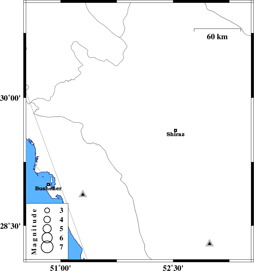 | 2021/01/24 | 18:23:43.2 | 21:53:43.2 | 29.6 | 52.04 | 16 | ML3 | Fars Province, 37 km -East of Kazerun |