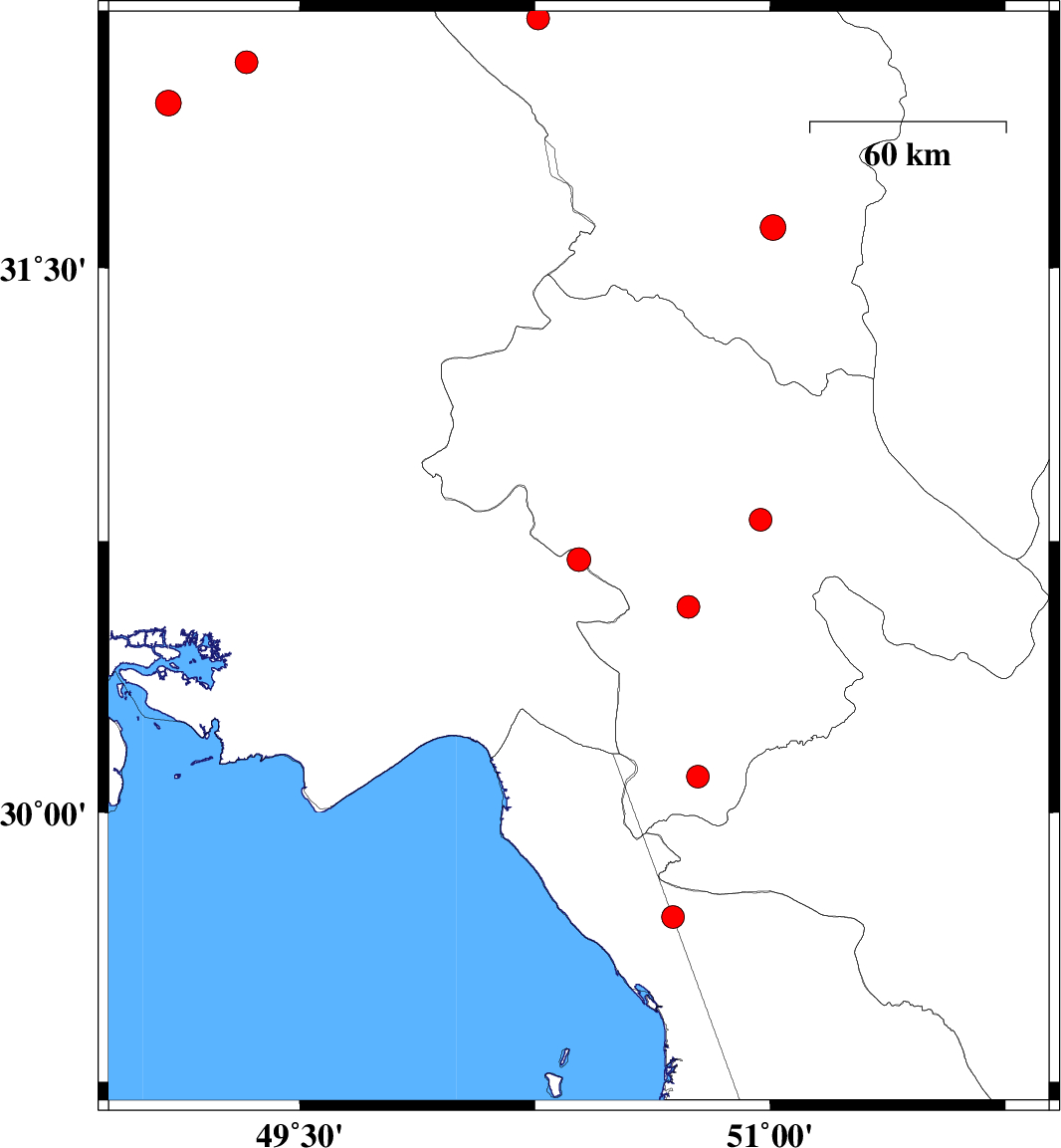 Bushehr Province, 23 km North-East of Bandar-e genaveh | |