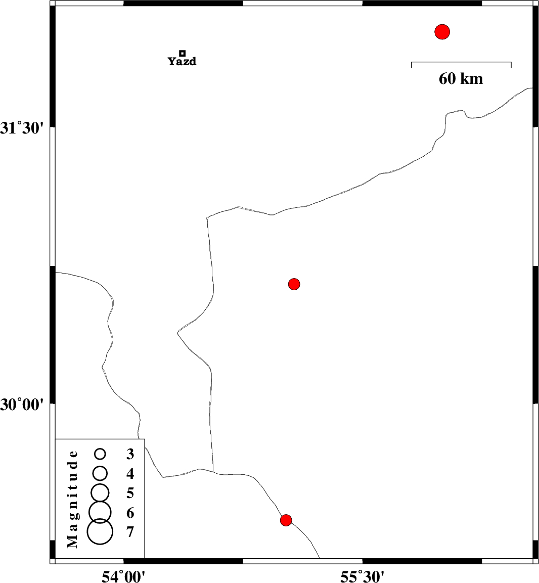 | 2021/01/03 | 19:28:01.0 | 22:58:01.0 | 32.01 | 56 | 24 | ML4.3 | Yazd Province, 73 km North-East of Bafq |