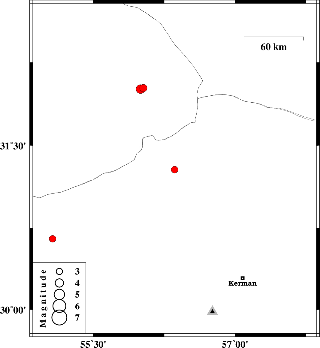 2021/01/29 13:36:10.3 17:06:10.3 30.6555.0710 ML3.2 Kerman Province, 60 km North of Shahr-e babak