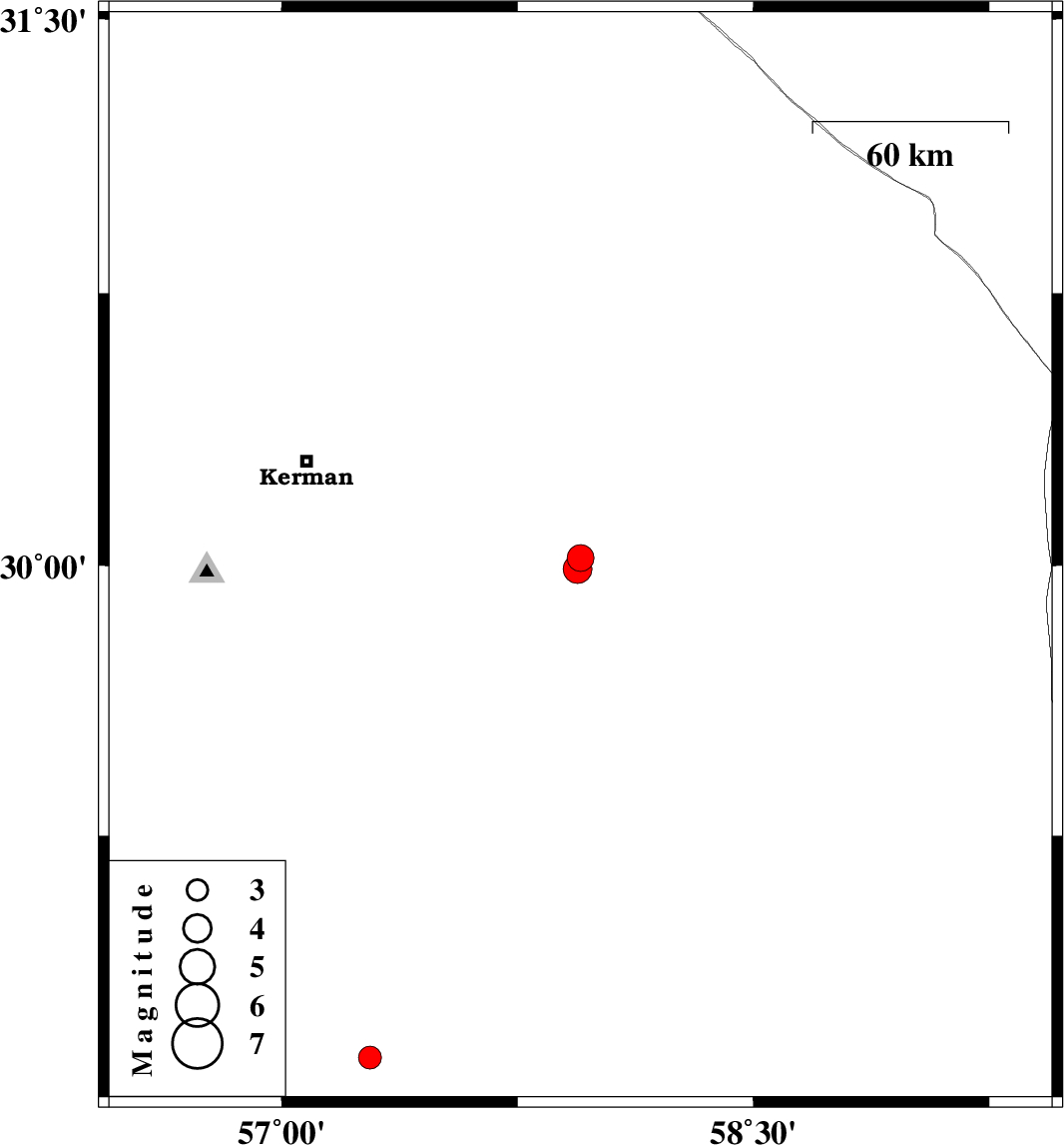 | 2021/01/08 | 01:14:08.7 | 04:44:08.7 | 28.63 | 57.28 | 16 | ML3.3 | Kerman Province, 45 km -West of Jiroft |