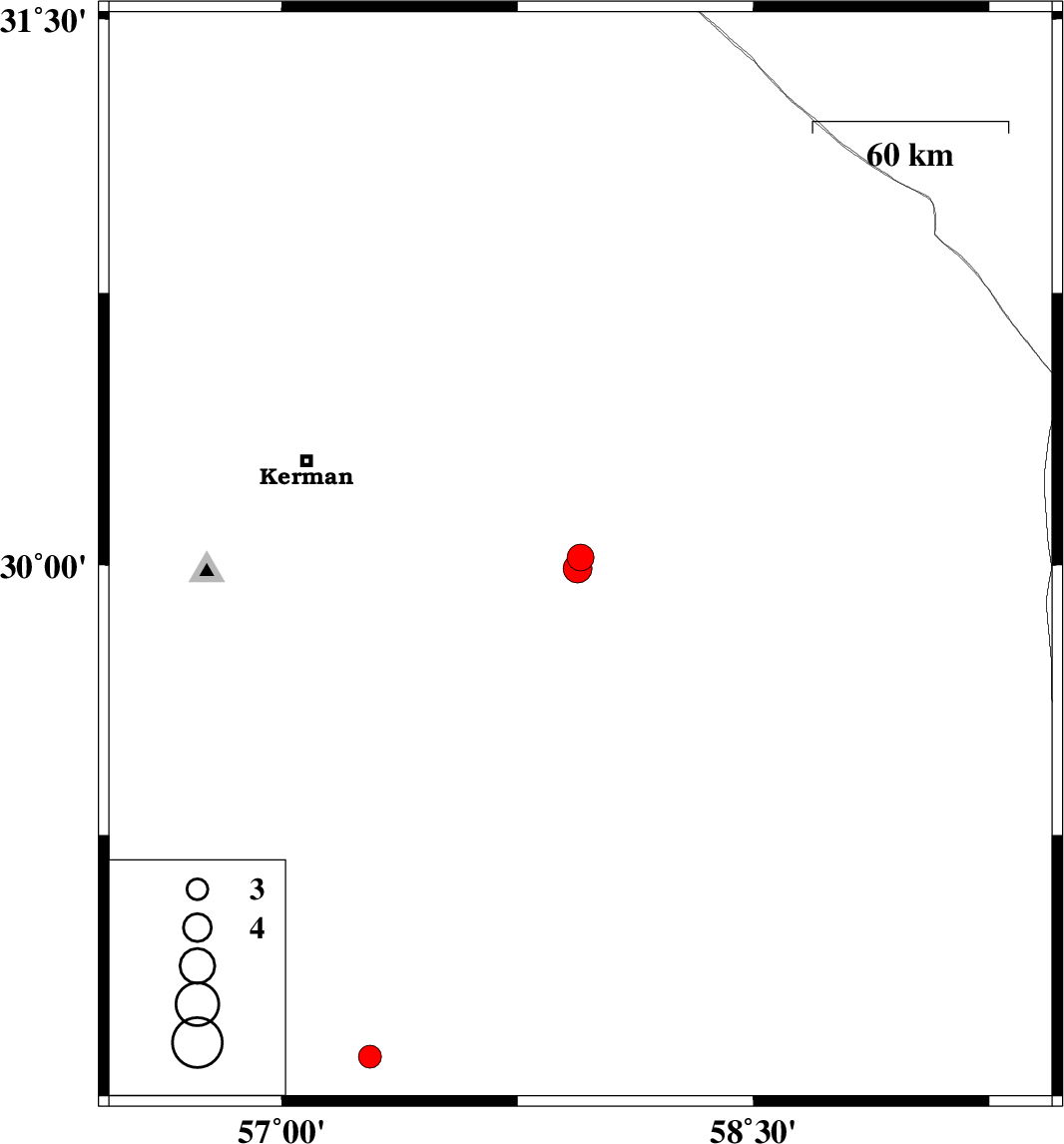 | 2021/02/03 | 07:22:30.2 | 10:52:30.2 | 29.99 | 57.94 | 10 | ML4.1 | Kerman Province, 89 km South-East of Kerman | ||