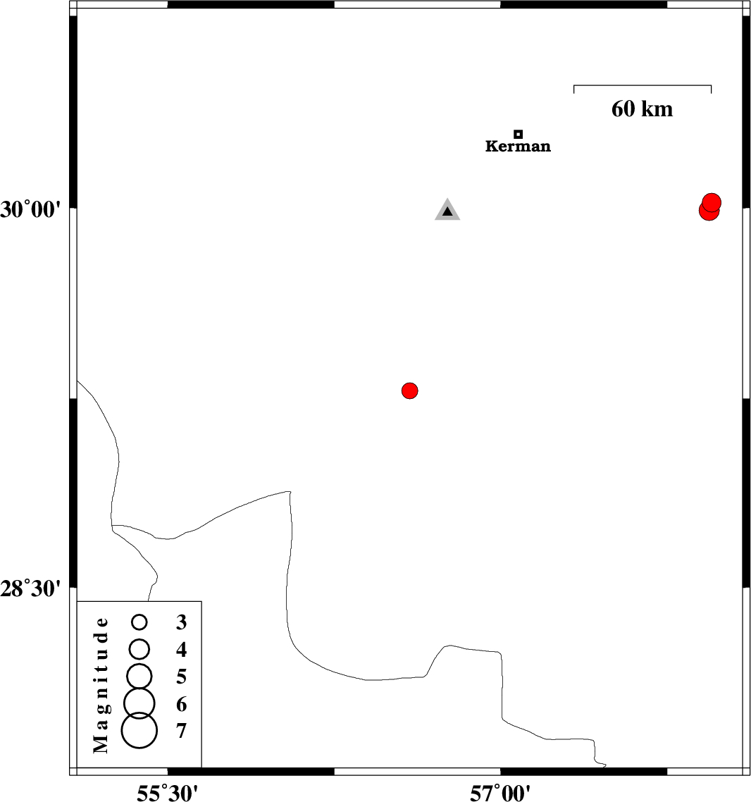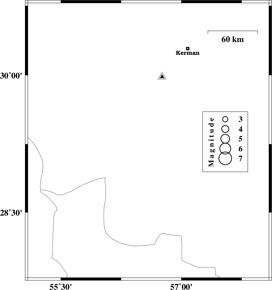 | 2021/02/03 | 07:22:30.2 | 10:52:30.2 | 29.99 | 57.94 | 10 | ML4.1 | Kerman Province, 89 km South-East of Kerman |