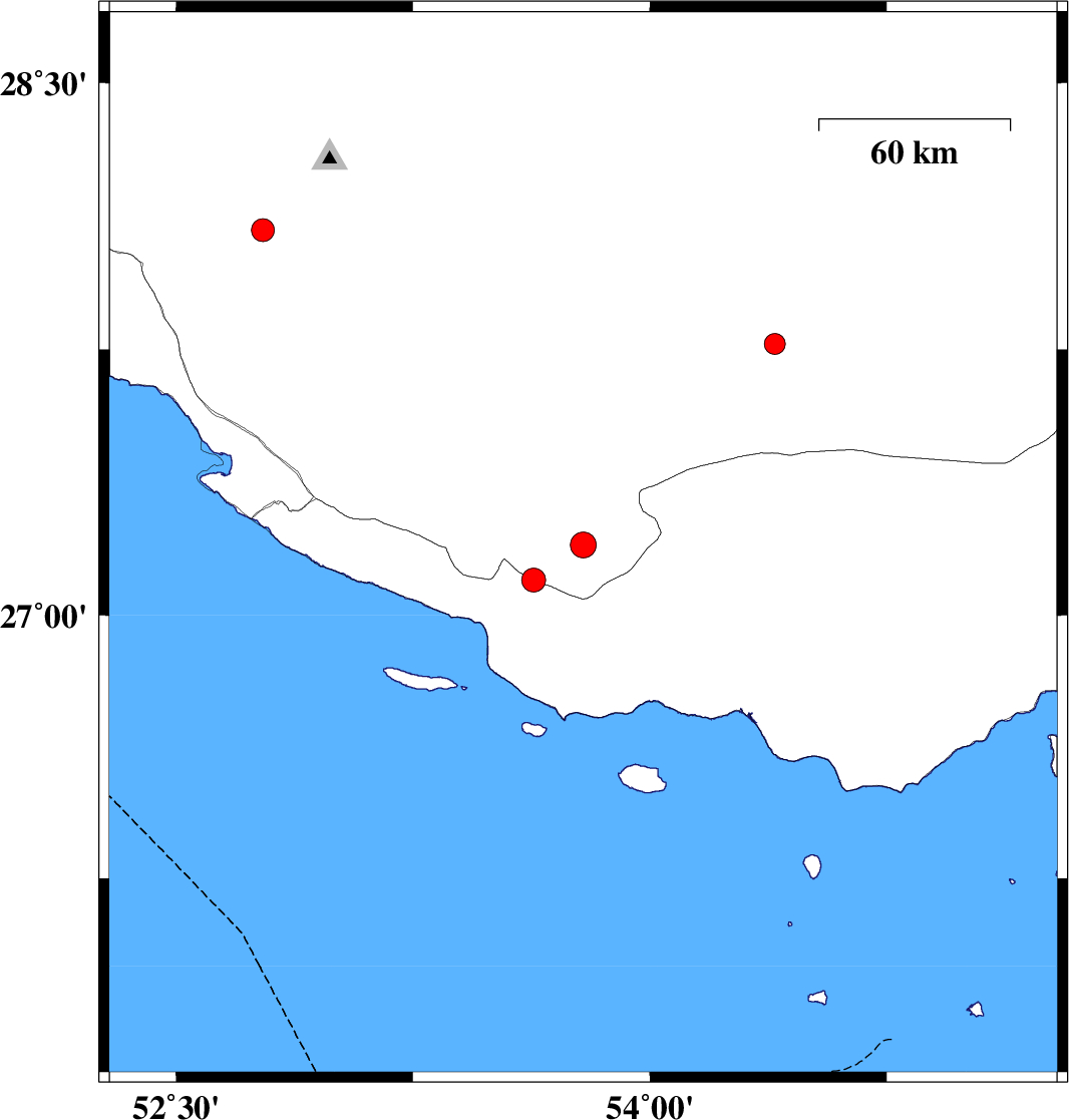 | 2021/02/16 | 07:59:30.9 | 11:29:30.9 | 27.198 | 53.789 | 12 | ML3.6 | Fars Province, 57 km -West of Bastak | ||