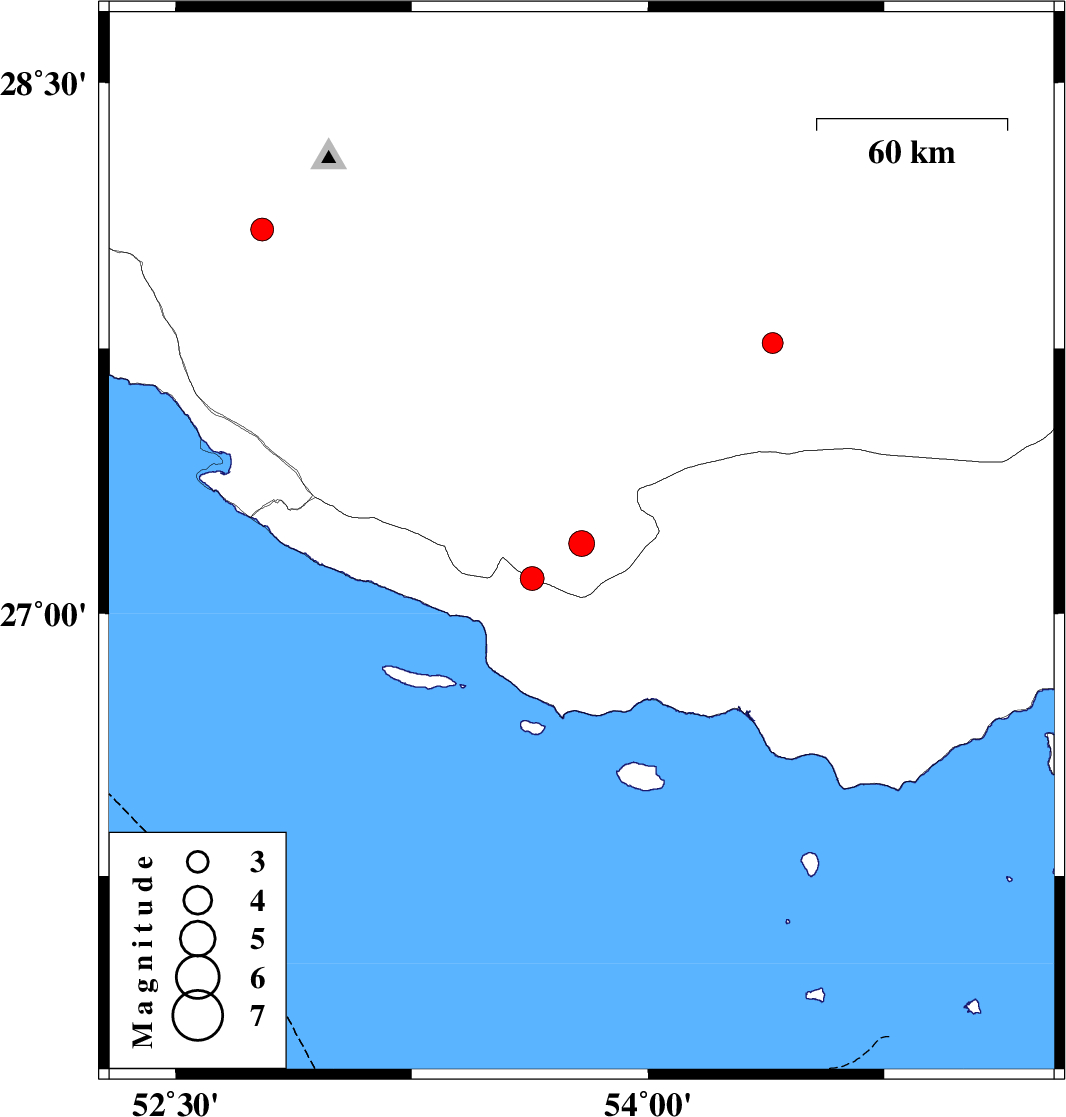 | 2021/02/14 | 00:21:04.8 | 03:51:04.8 | 28.086 | 52.775 | 16 | ML3.3 | Fars Province, 49 km South-West of Qir va Karzin | ||