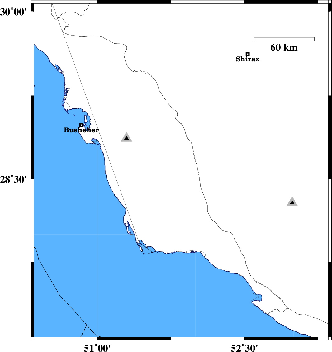| 2021/03/08 | 14:11:38.0 | 17:41:38.0 | 28.569 | 51.854 | 12 | ML3.3 | Bushehr Province, 40 km South-West of Farashband |