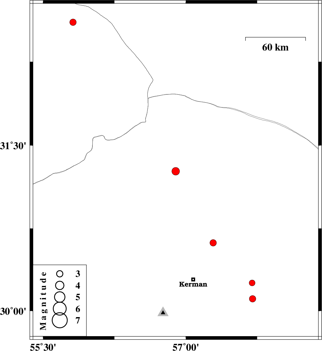 | 2021/03/14 | 13:12:53.4 | 16:42:53.4 | 30.62 | 57.288 | 16 | ML3.1 | Kerman Province, 42 km North-East of Kerman |