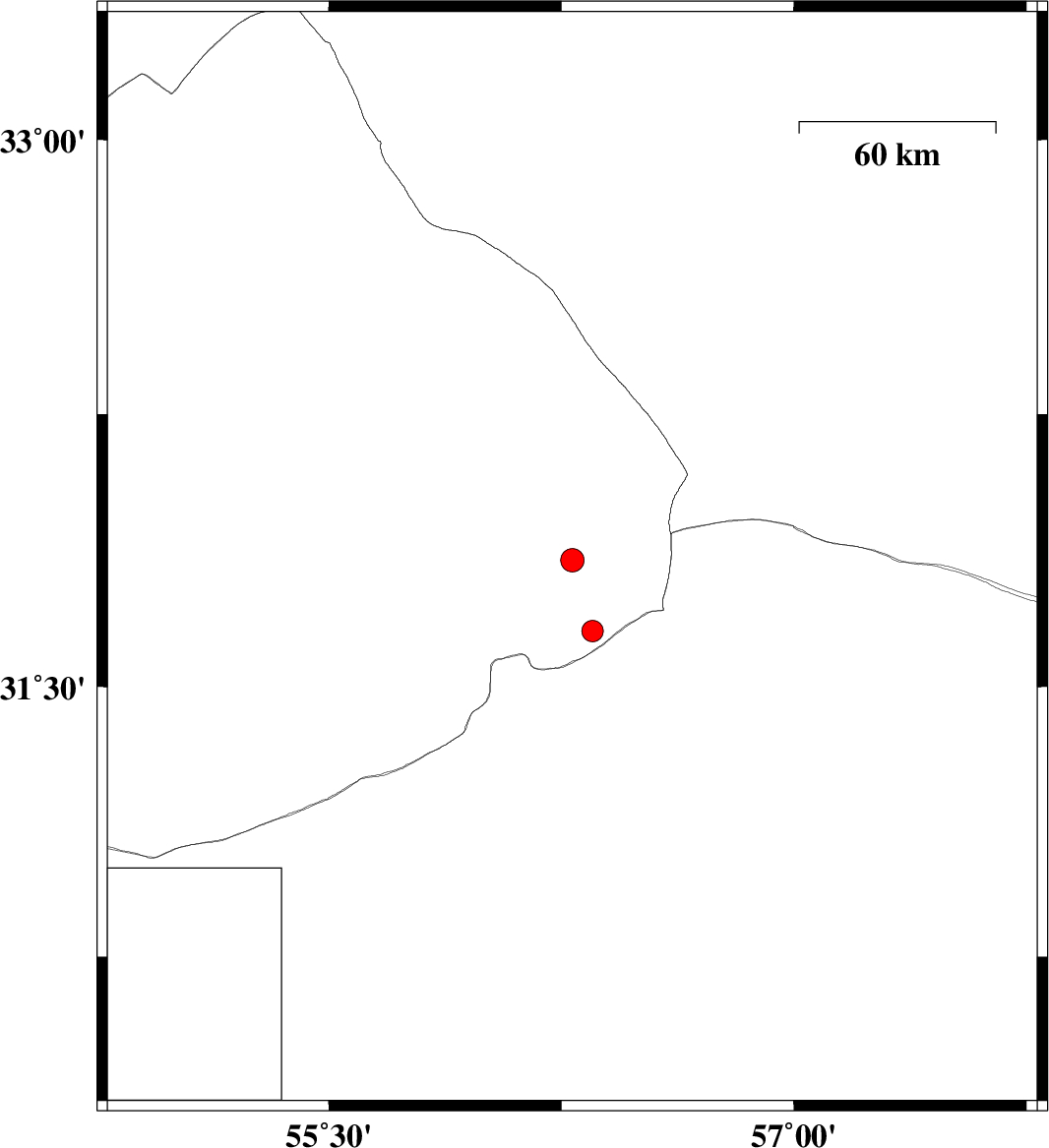 | 2021/05/09 | 23:58:01.3 | 04:28:01.3 | 31.654 | 56.35 | 12 | ML3.1 | Yazd Province, 61 km North-West of Ravar |