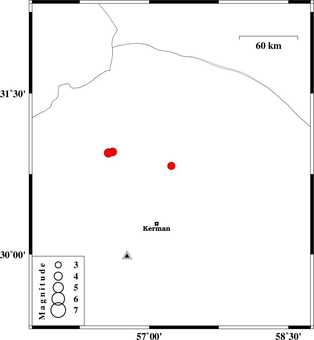 | 2021/07/01 | 14:06:17.1 | 18:36:17.1 | 30.957 | 56.607 | 23 | ML3.9 | Kerman Province, 17 km North of Zarand |