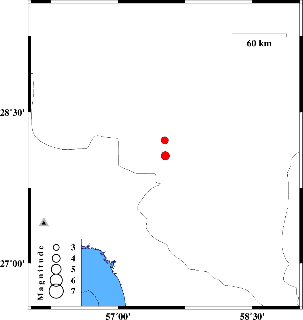| 2021/07/05 | 07:37:15.9 | 12:07:15.9 | 28.222 | 57.523 | 12 | ML3.7 | Kerman Province, 35 km North-West of Kahnuj |