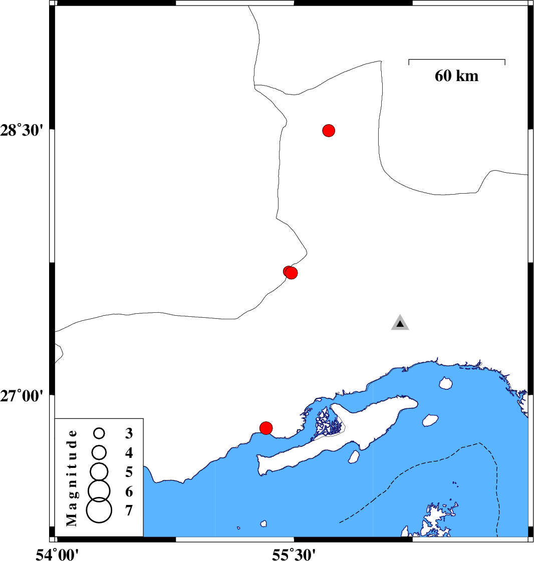 | 2021/06/19 | 17:43:50.6 | 22:13:50.6 | 26.811 | 55.322 | 16 | ML3.7 | Hormozgan Province, 57 km North-East of Bandar-e lengeh |