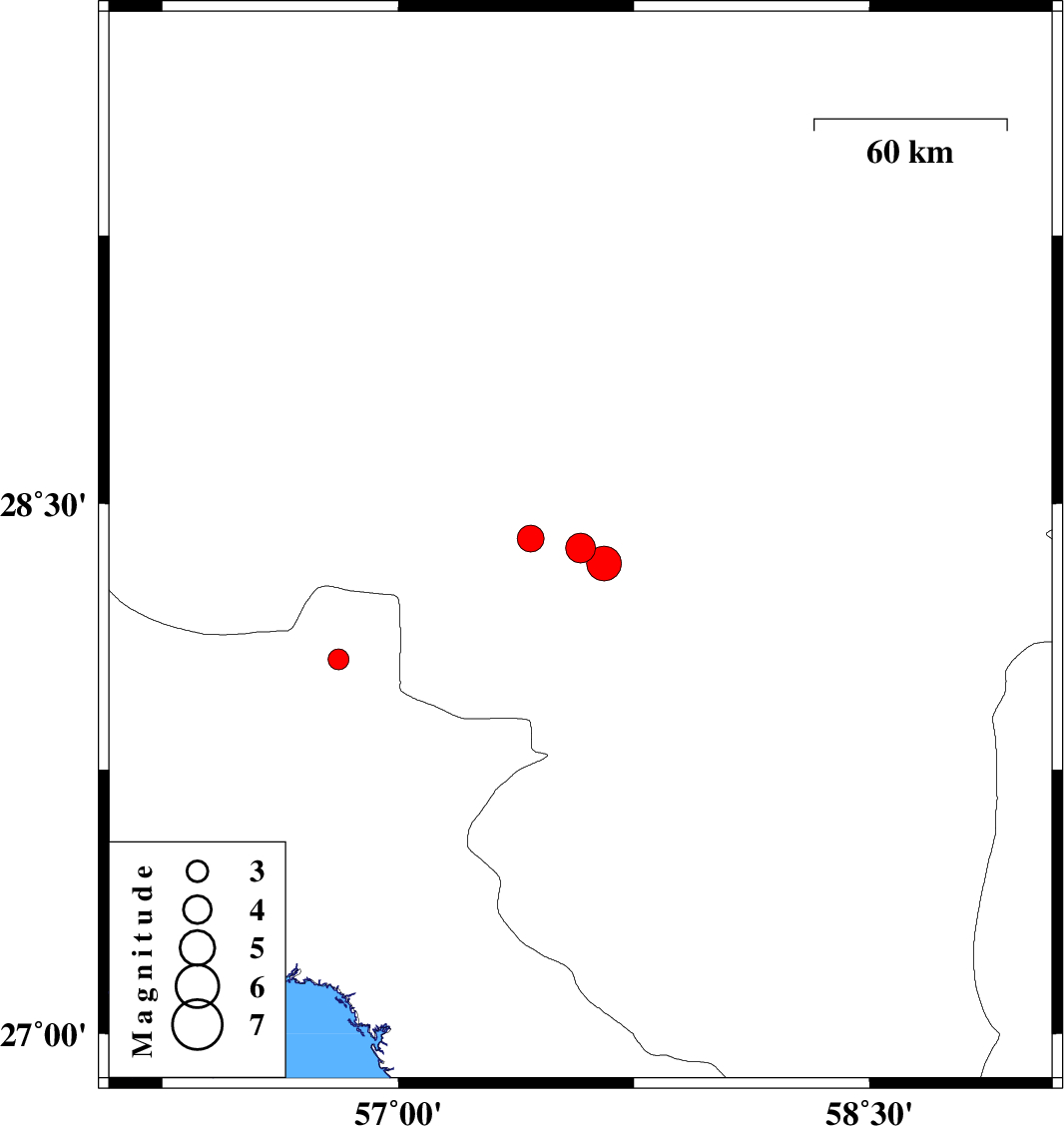 2021/08/12 14:52:30.6 19:22:30.6 28.37557.5810 ML4.2 Kerman Province, 36 km South-West of Jiroft