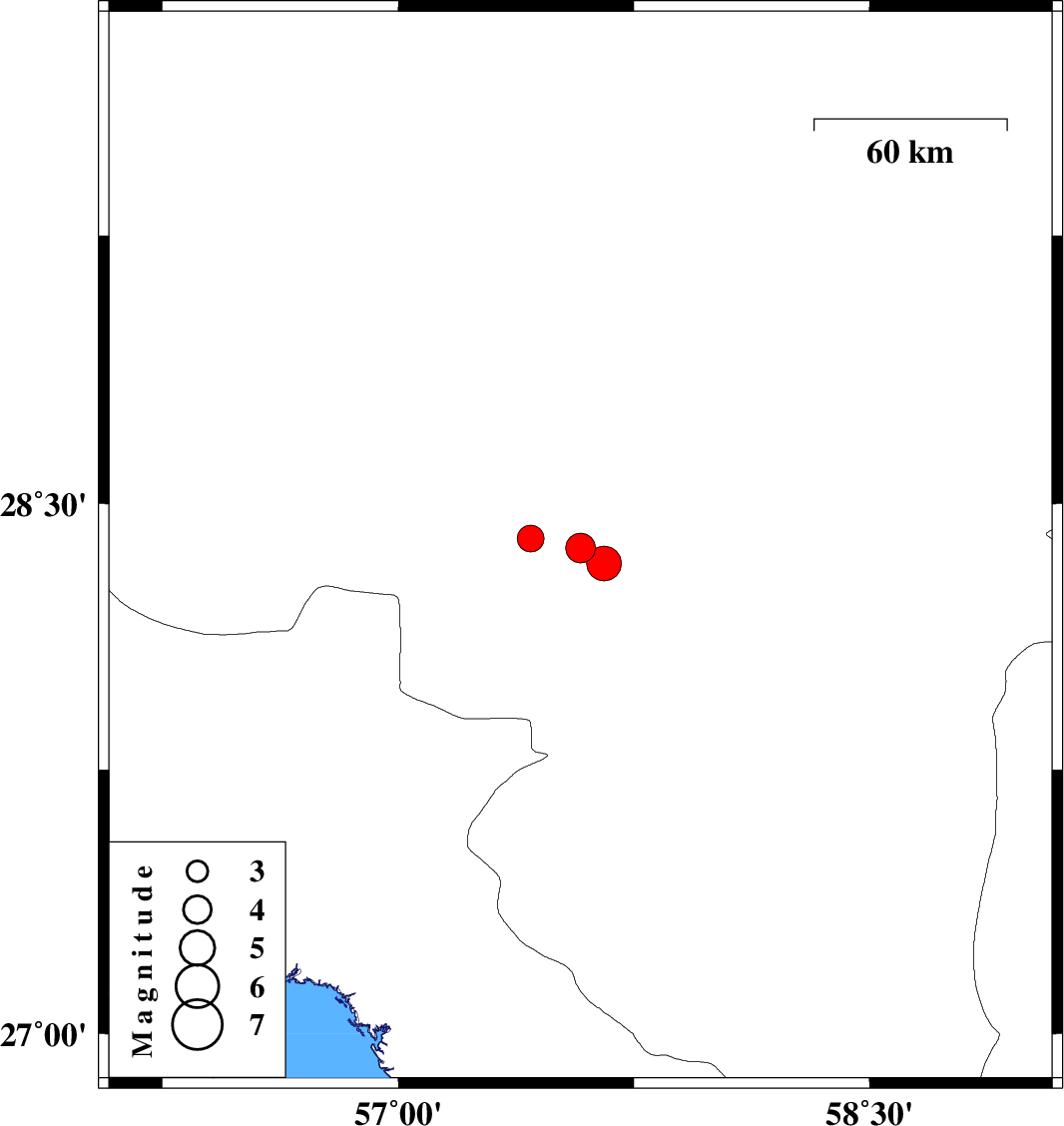 | 2021/08/12 | 12:11:05.2 | 16:41:05.2 | 28.402 | 57.422 | 9 | ML3.8 | Kerman Province, 43 km South-West of Jiroft |