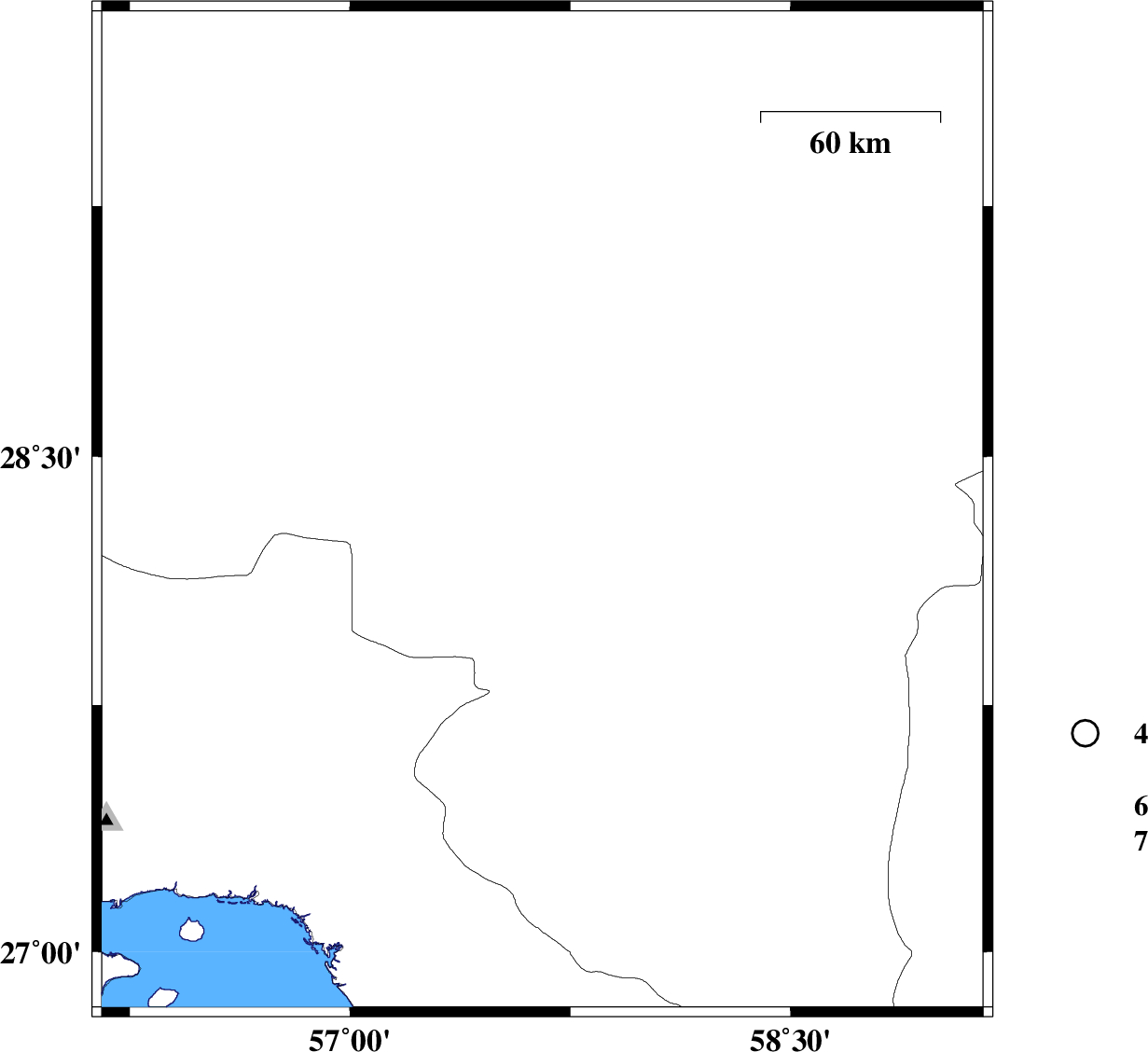 | 2021/08/12 | 14:52:30.6 | 19:22:30.6 | 28.375 | 57.58 | 10 | ML4.2 | Kerman Province, 36 km South-West of Jiroft | ||
