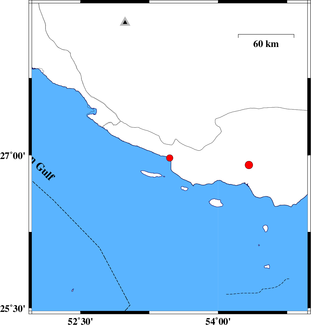 | 2021/08/23 | 22:49:12.2 | 03:19:12.2 | 26.973 | 53.472 | 12 | ML3.3 | Hormozgan Province, 50 km South-East of Lamerd | ||