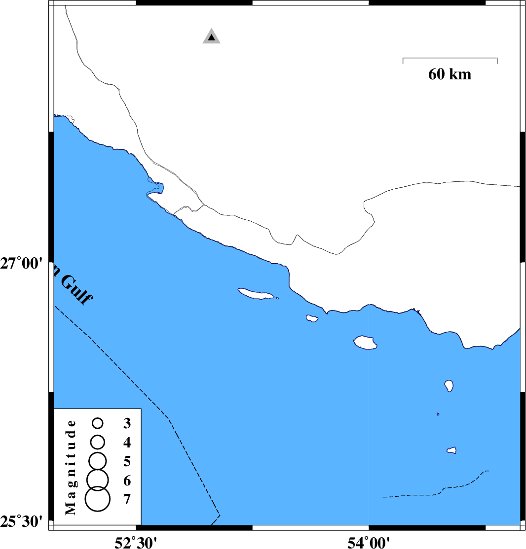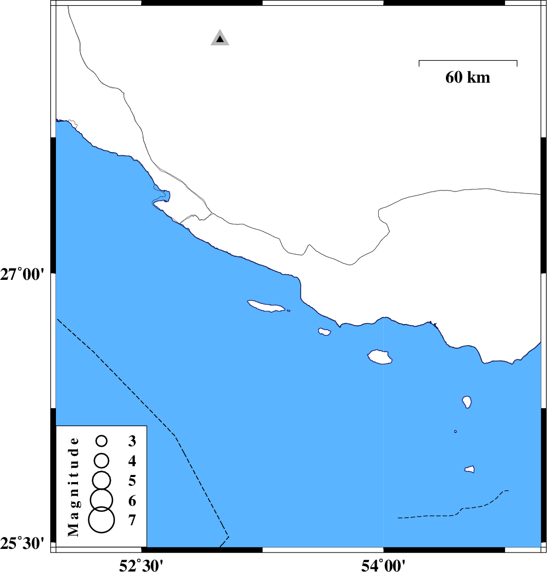 | 2021/08/23 | 22:49:12.2 | 03:19:12.2 | 26.973 | 53.472 | 12 | ML3.3 | Hormozgan Province, 50 km South-East of Lamerd |