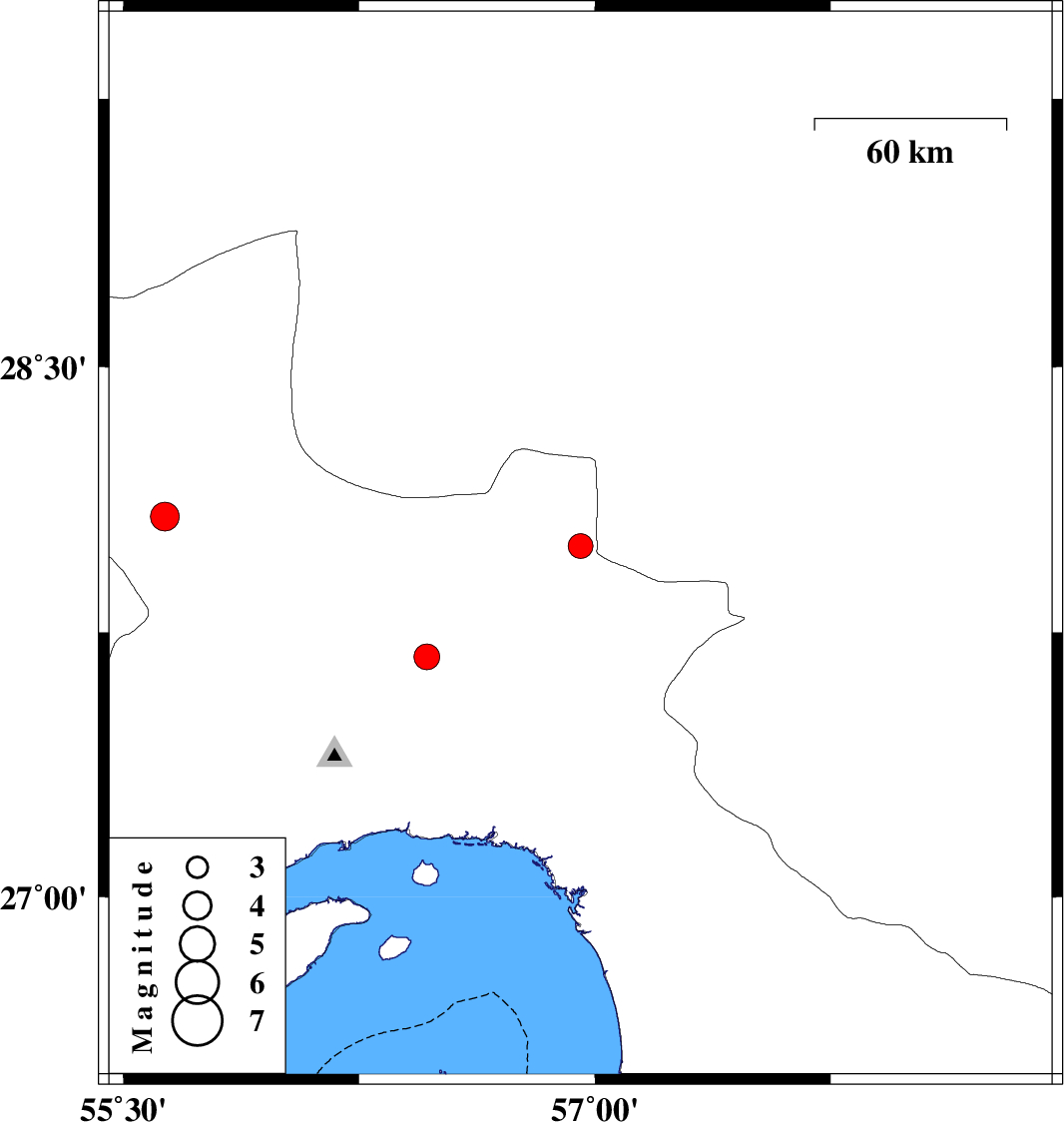 | 2021/08/22 | 22:27:49.2 | 02:57:49.2 | 28.078 | 55.632 | 12 | ML4.1 | Hormozgan Province, 37 km South-West of Hajiabad |