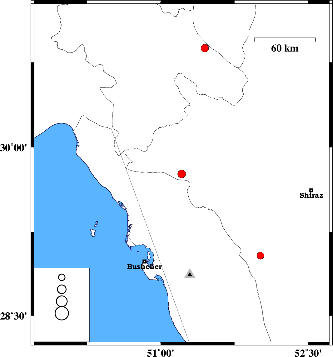| 2021/08/28 | 13:03:00.4 | 17:33:00.4 | 29.037 | 52.014 | 12 | ML3.2 | Fars Province, 20 km North of Farashband |