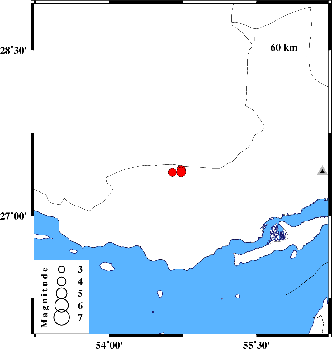 2021/09/11 22:45:20.9 03:15:20.9 27.39754.73112 ML4.2 Hormozgan Province, 43 km North-East of Bastak