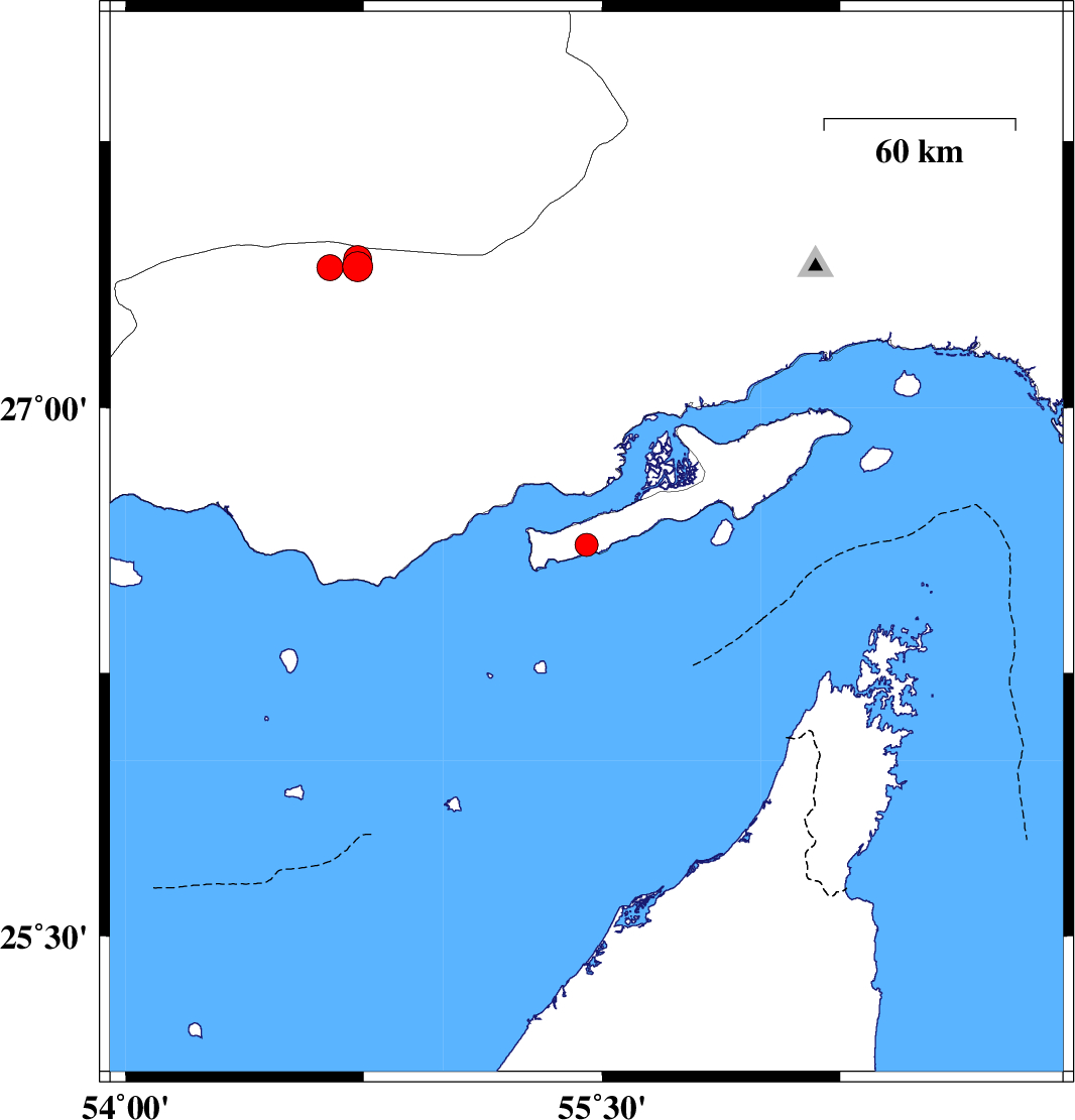 | 2021/09/30 | 10:29:00.7 | 13:59:00.7 | 26.613 | 55.451 | 16 | ML3.3 | Persian Gulf, 61 km -East of Bandar-e lengeh | ||