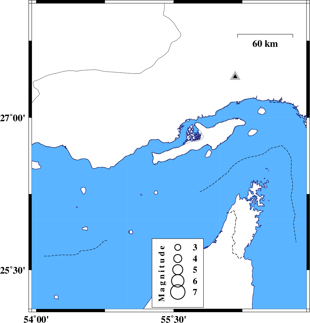 | 2021/09/30 | 10:29:00.7 | 13:59:00.7 | 26.613 | 55.451 | 16 | ML3.3 | Persian Gulf, 61 km -East of Bandar-e lengeh |