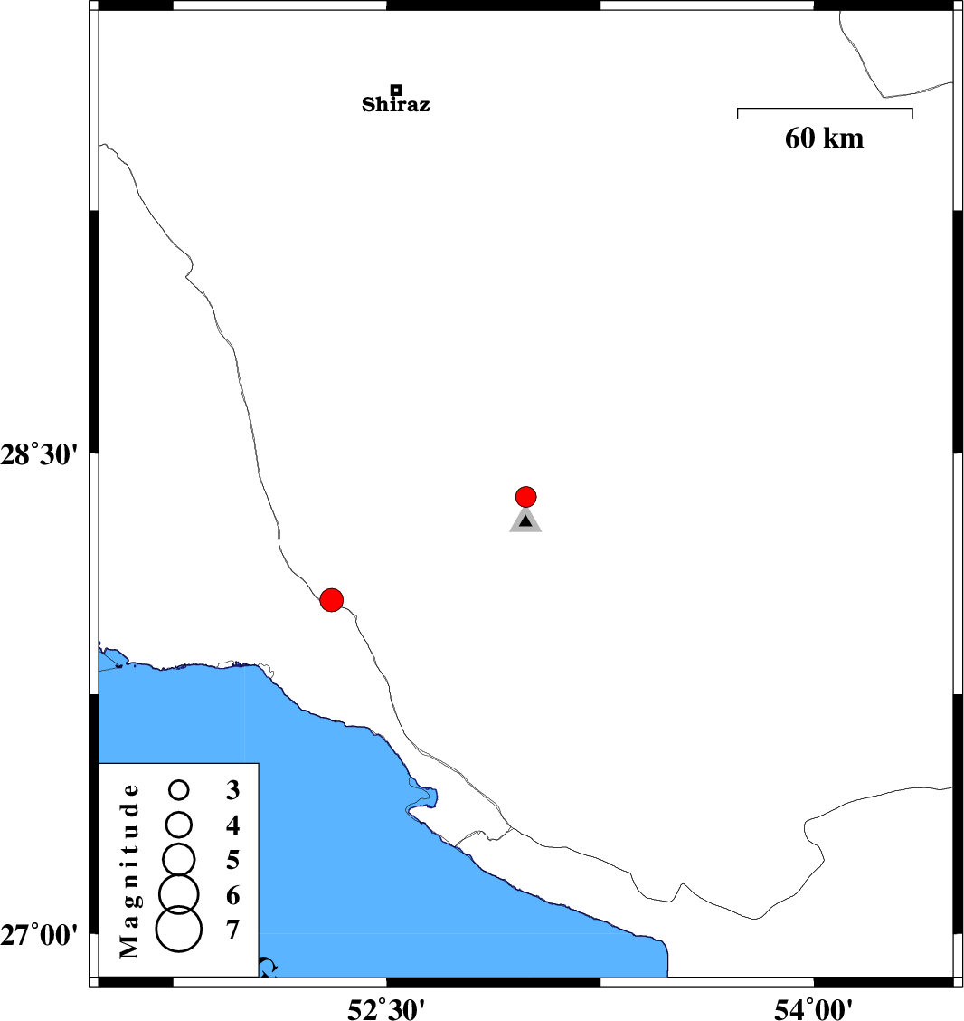 | 2021/10/08 | 10:13:25.8 | 13:43:25.8 | 28.043 | 52.306 | 15 | ML3.6 | Fars Province, 23 km North of Jam |