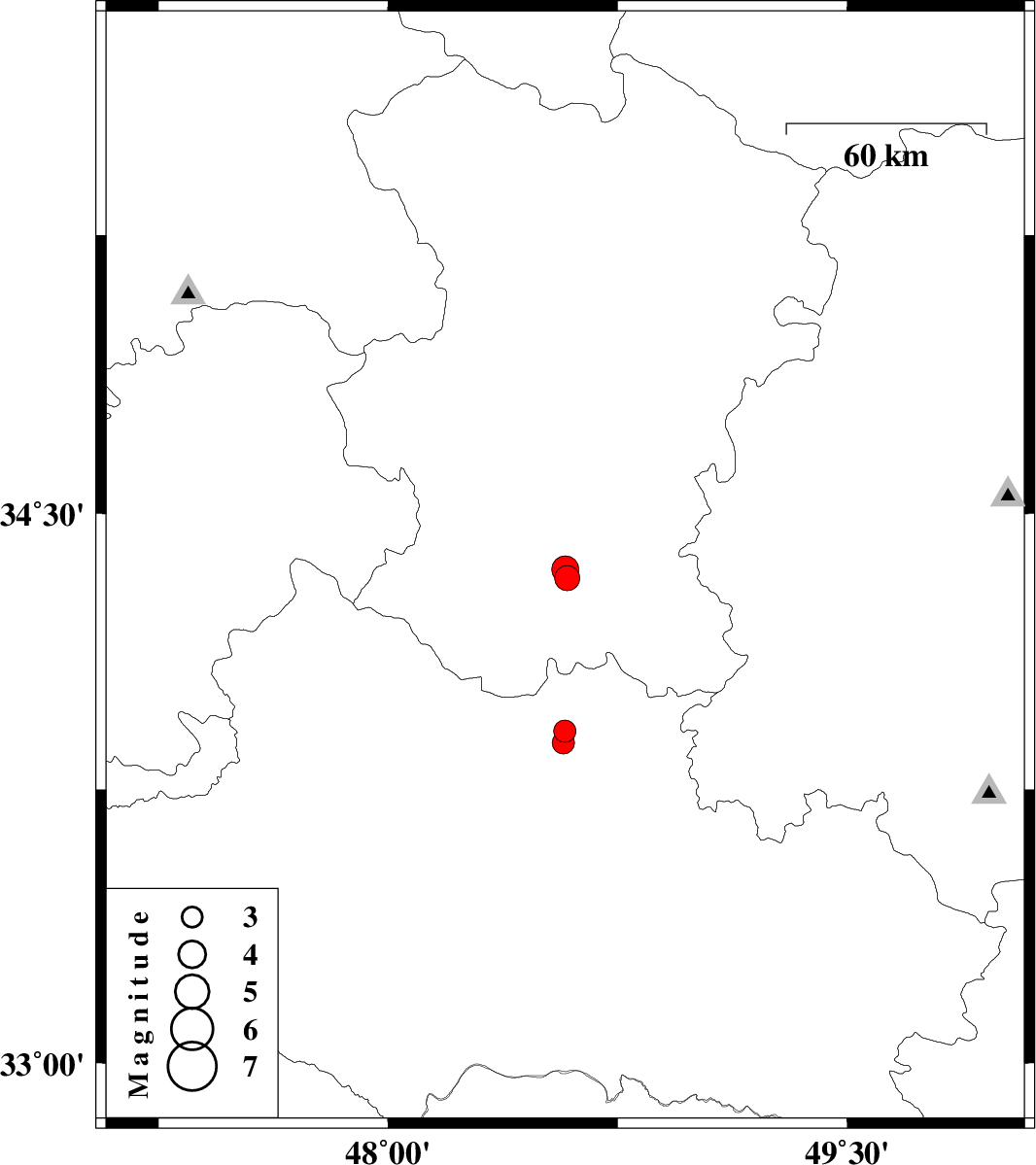 | 2021/09/25 | 13:05:04.0 | 16:35:04.0 | 33.878 | 48.573 | 12 | ML3.2 | Lorestan Province, 17 km -West of Borujerd |