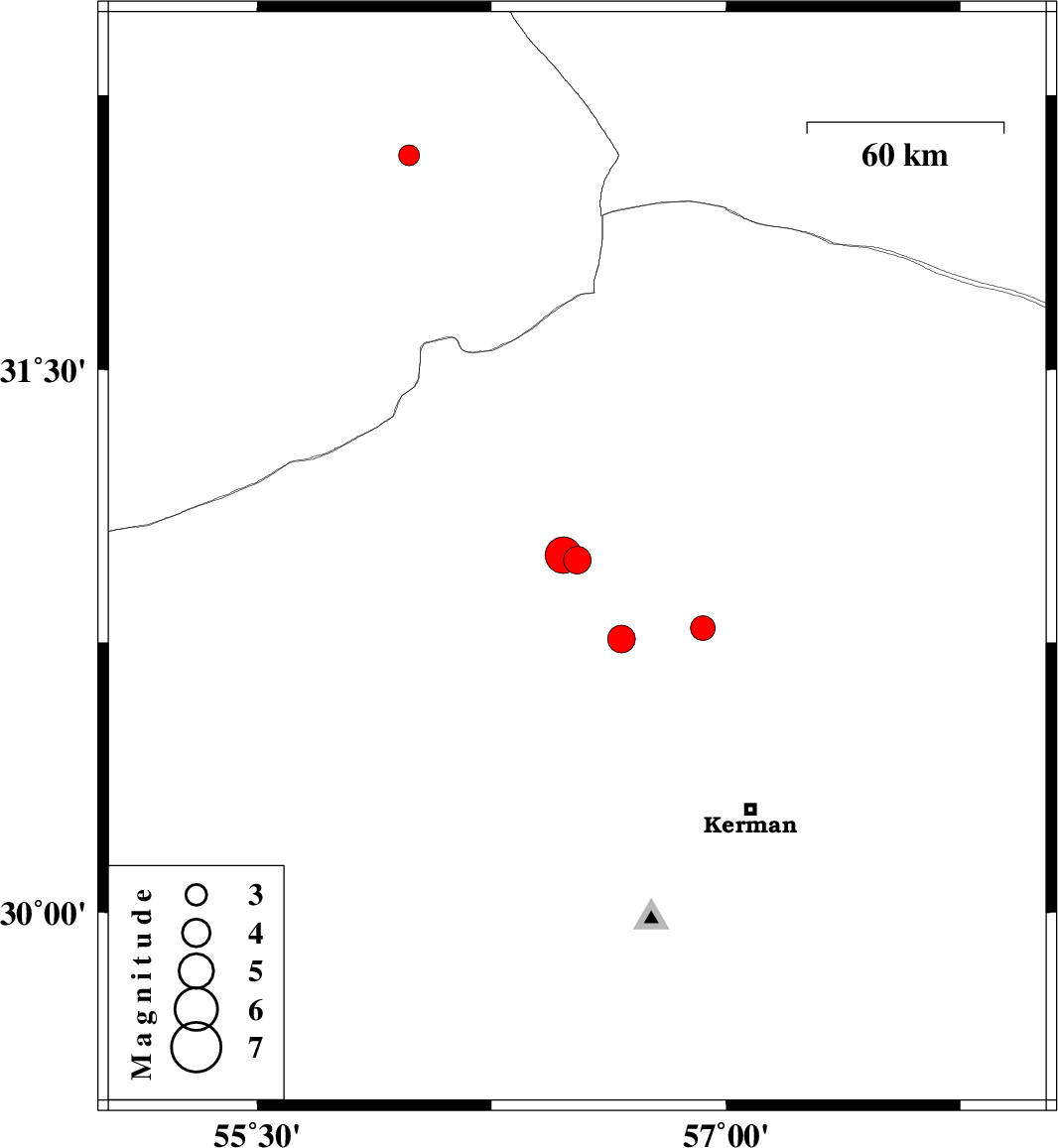 | 2021/10/16 | 11:46:01.9 | 15:16:01.9 | 30.991 | 56.48 | 12 | ML5.2 | Kerman Province, 22 km North of Zarand | ||