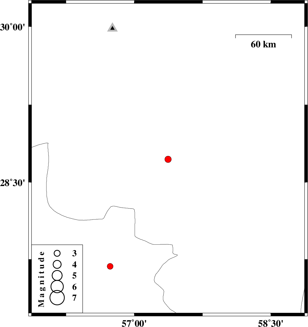 | 2021/10/20 | 01:36:25.7 | 05:06:25.7 | 28.723 | 57.371 | 12 | ML3.3 | Kerman Province, 36 km -West of Jiroft | ||