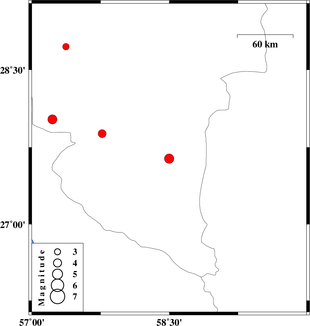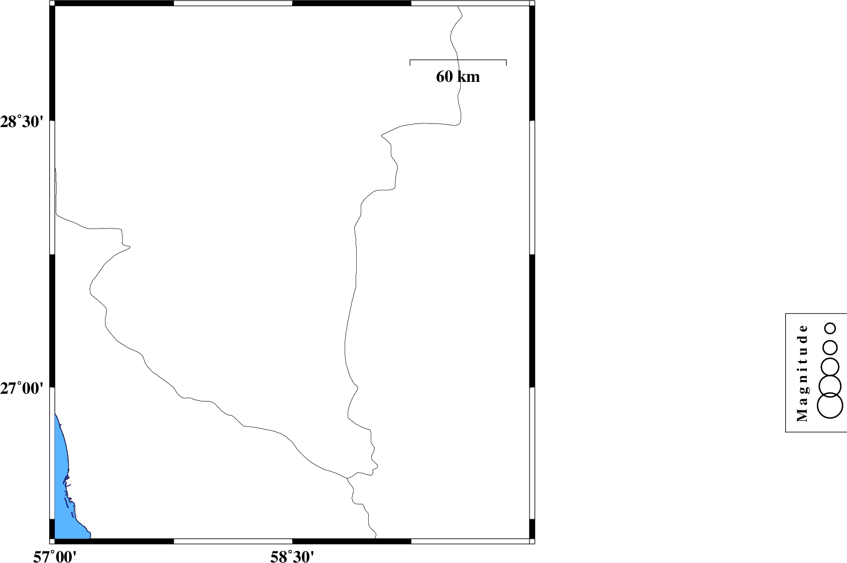 | 2021/09/21 | 08:07:52.6 | 12:37:52.6 | 27.882 | 57.767 | 12 | ML3.9 | Kerman Province, 10 km of Kahnuj |