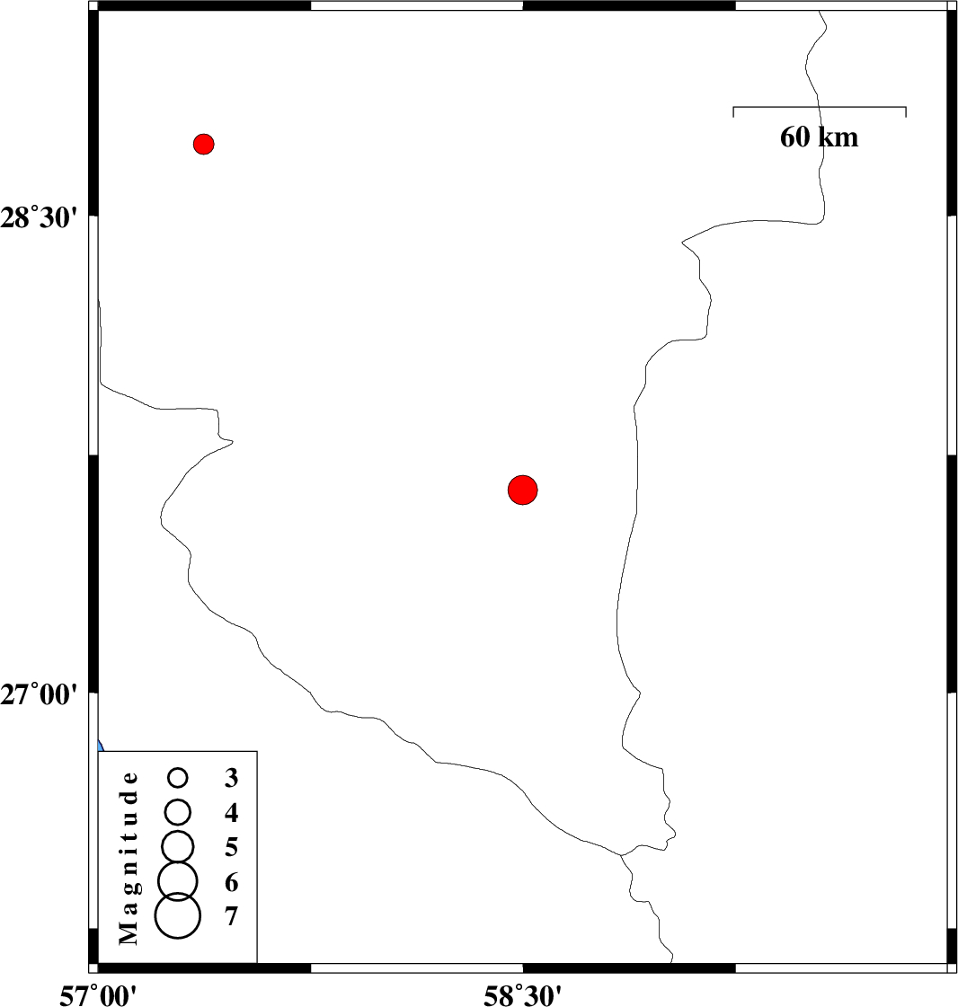 | 2021/10/21 | 06:05:14.8 | 09:35:14.8 | 27.639 | 58.498 | 12 | ML4.7 | Kerman Province, 86 km South-East of Kahnuj | ||