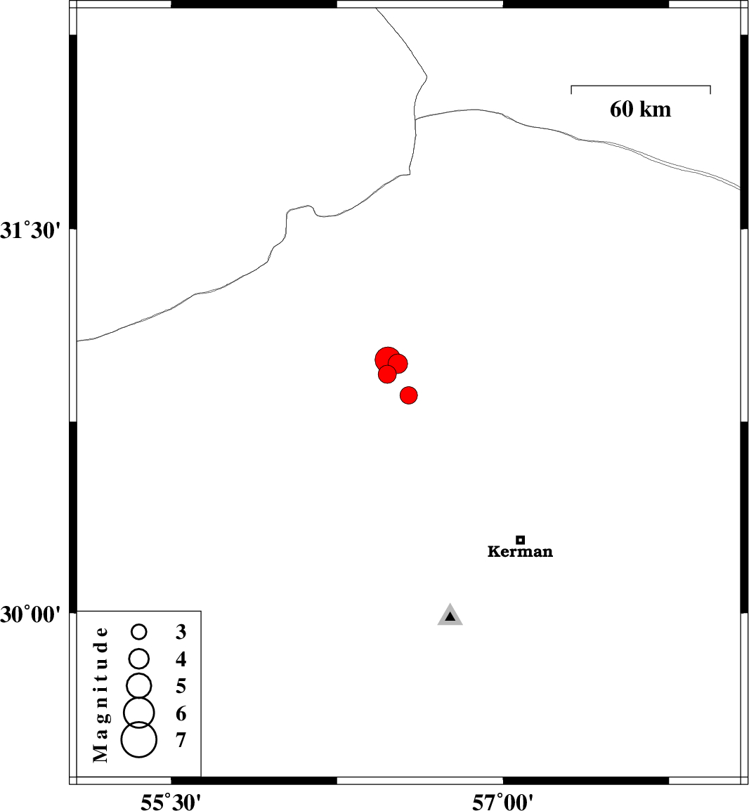 | 2021/10/16 | 12:59:18.9 | 16:29:18.9 | 30.977 | 56.524 | 1 | ML4 | Kerman Province, 19 km North of Zarand | ||