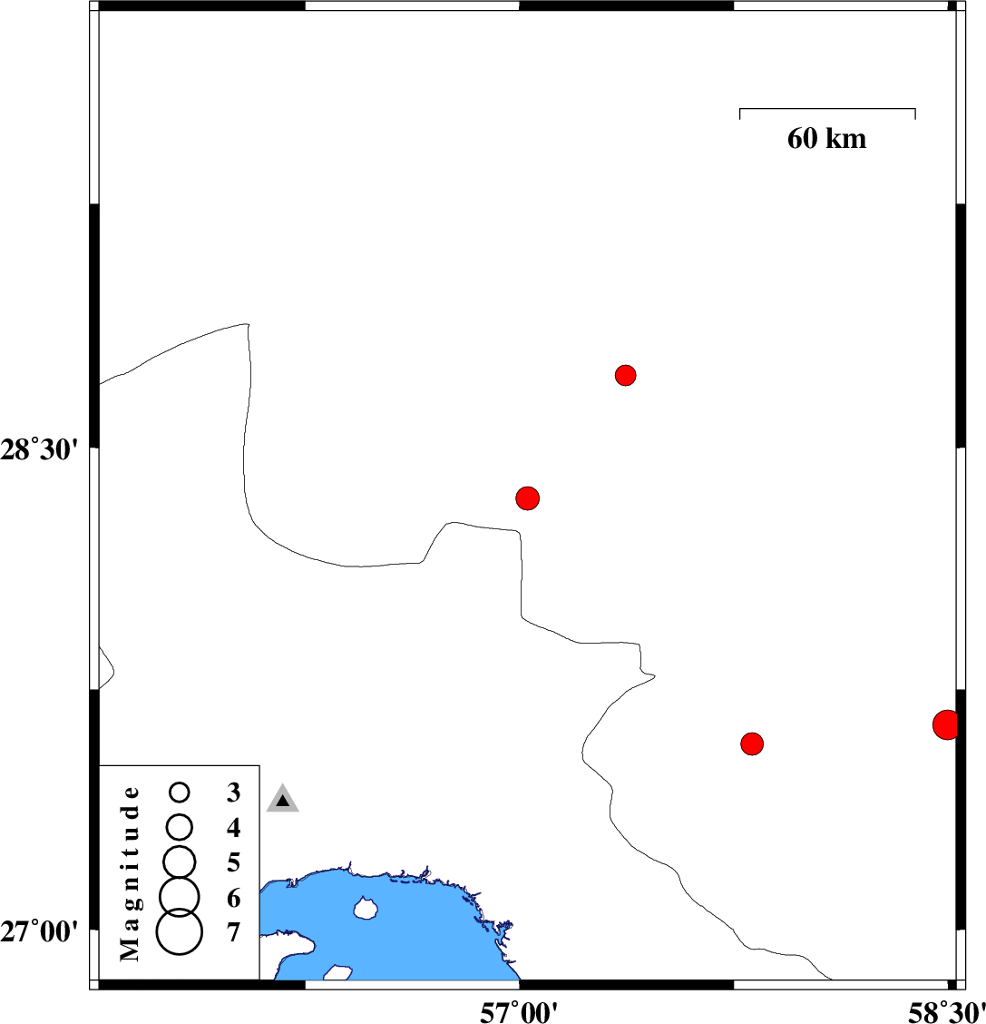 | 2021/10/23 | 05:40:09.9 | 09:10:09.9 | 27.58 | 57.814 | 16 | ML3.5 | Kerman Province, 37 km North-East of Manujan | ||