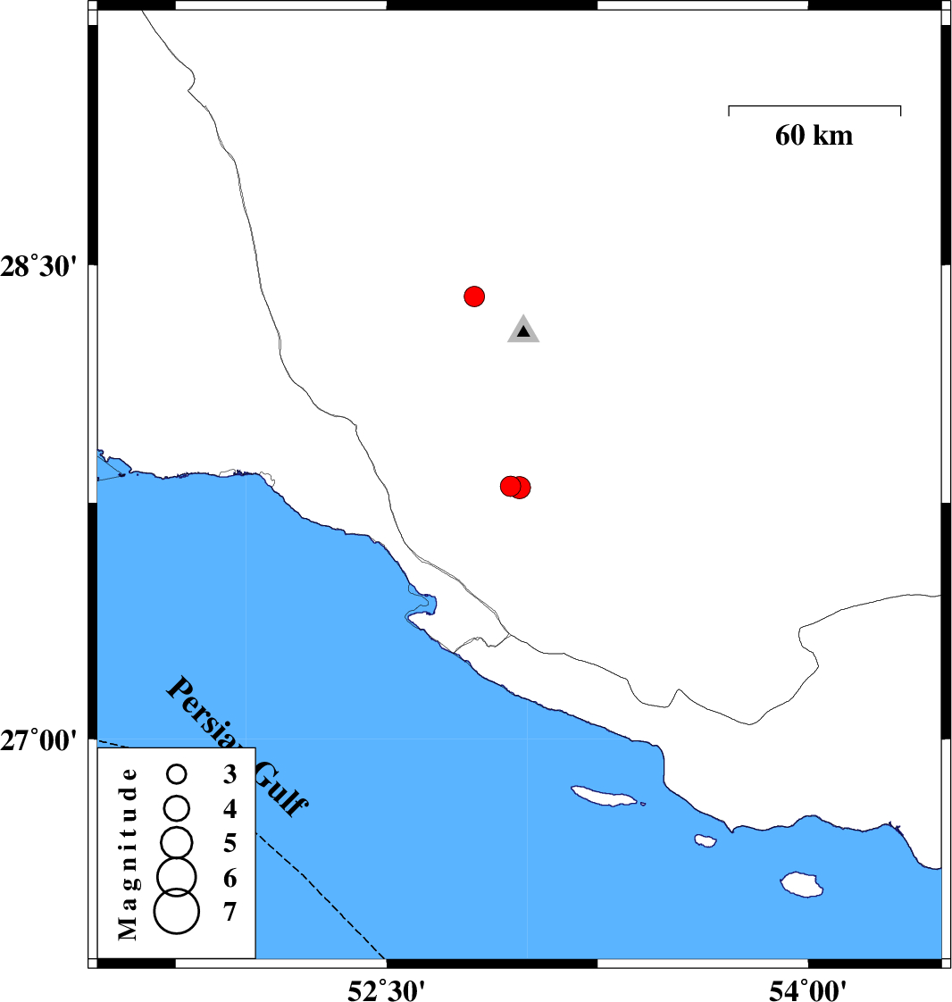 | 2021/10/31 | 07:49:13.3 | 11:19:13.3 | 27.798 | 52.972 | 10 | ML3.5 | Fars Province, 29 km North of Mehr | ||