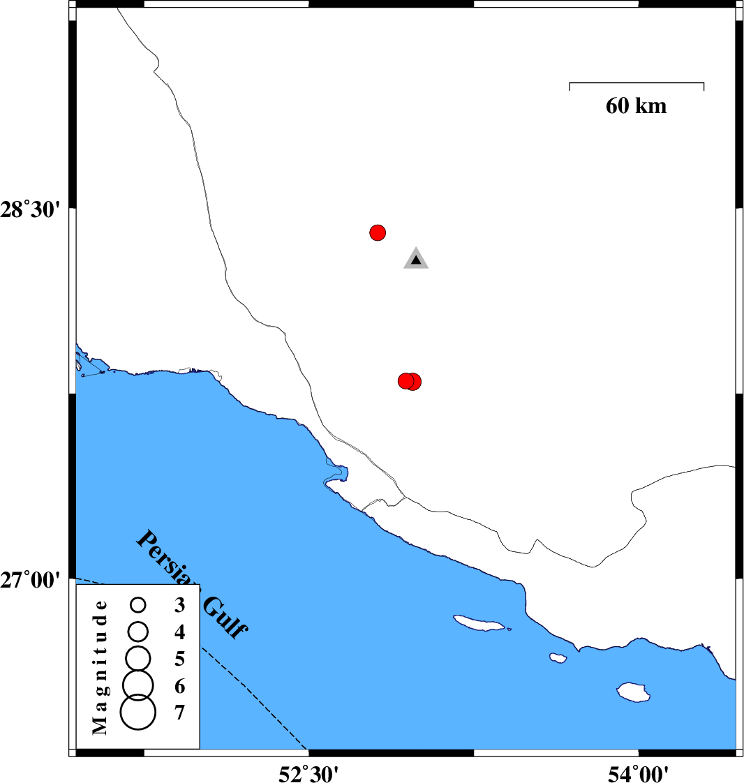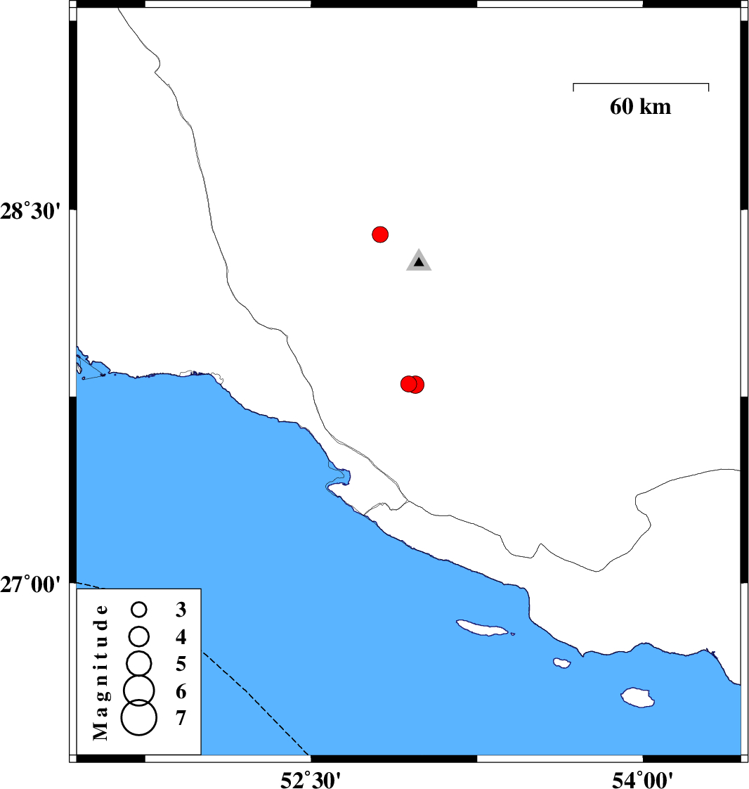 | 2021/10/31 | 07:49:13.3 | 11:19:13.3 | 27.798 | 52.972 | 10 | ML3.5 | Fars Province, 29 km North of Mehr | ||