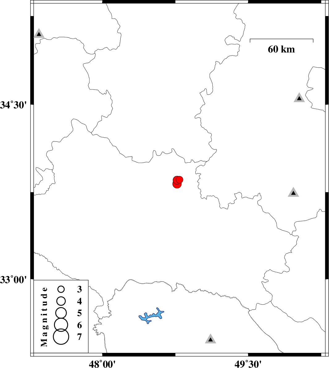 | 2021/11/11 | 08:24:28.4 | 11:54:28.4 | 33.822 | 48.768 | 12 | ML4.1 | Lorestan Province, 8 km of Borujerd |