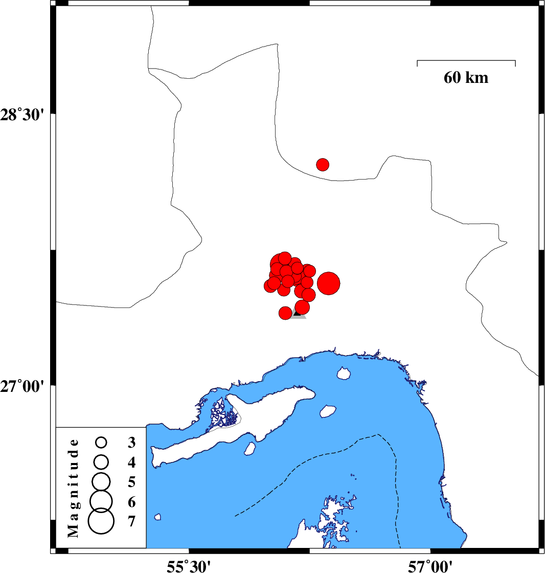 2021/11/14 14:24:16.6 17:54:16.6 27.50156.24310 ML3.8 Hormozgan Province, 35 km North of Bandar-e abbas
