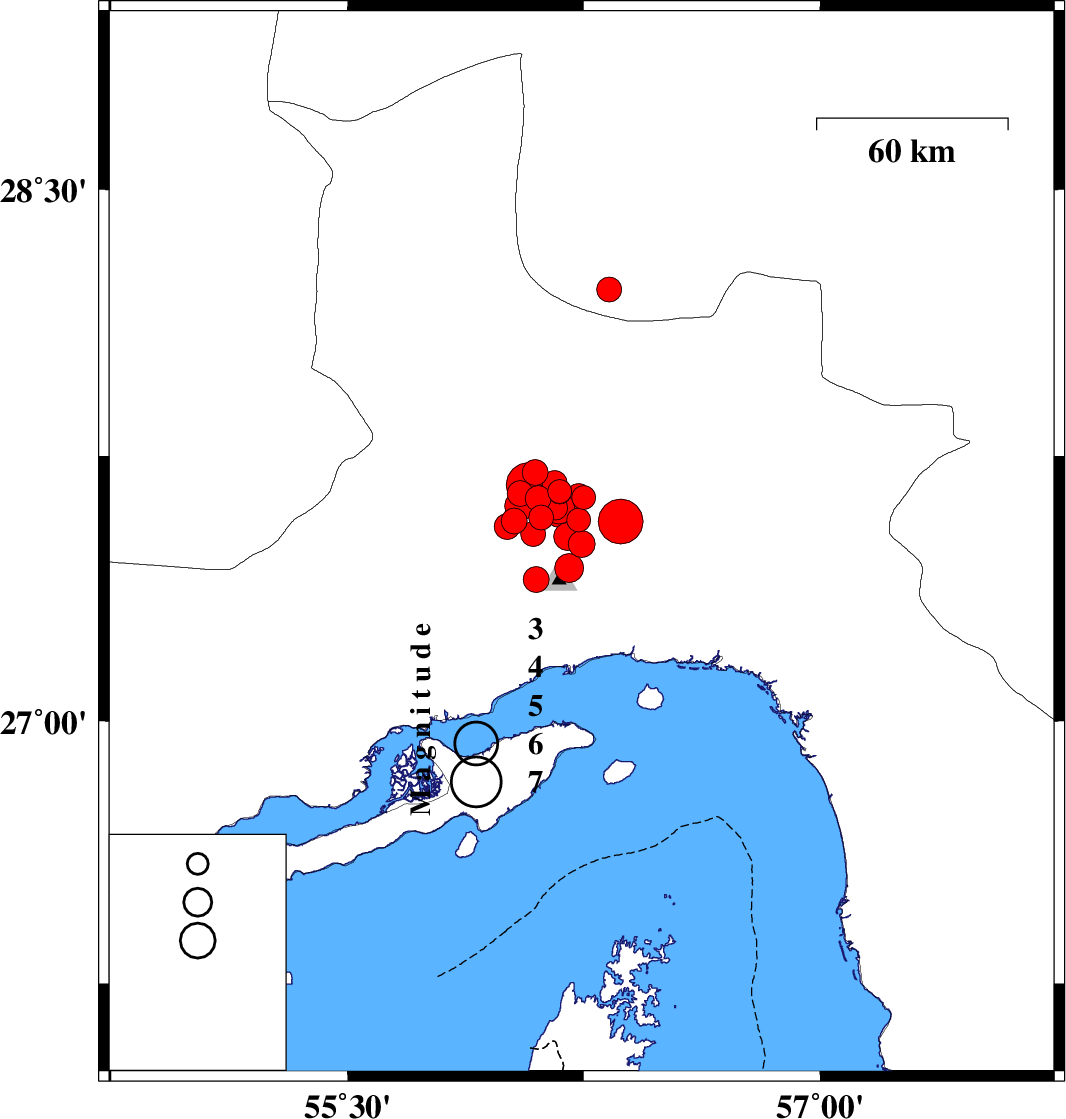 2021/11/14 13:05:53.8 16:35:53.8 27.40156.0999 ML3.7 Hormozgan Province, 30 km North-West of Bandar-e abbas