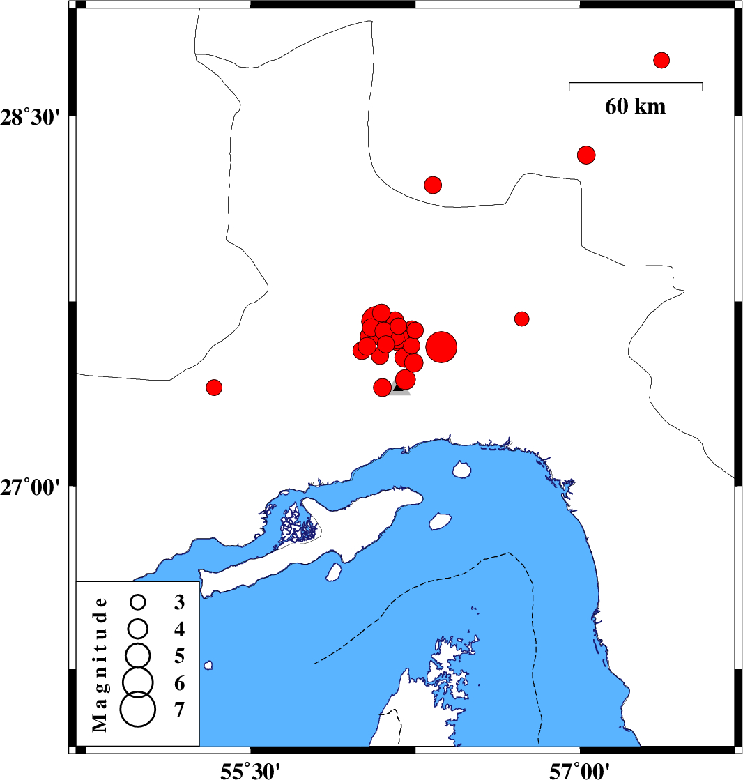 2021/11/14 12:08:36.9 15:38:36.9 27.56556.36715 ML6.4 Hormozgan Province, 43 km North of Bandar-e abbas